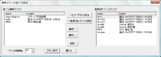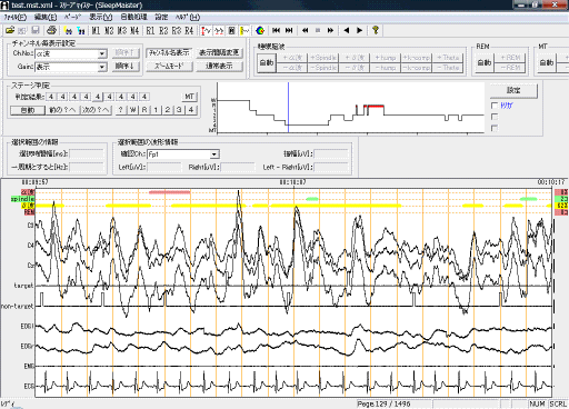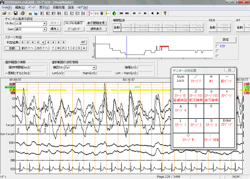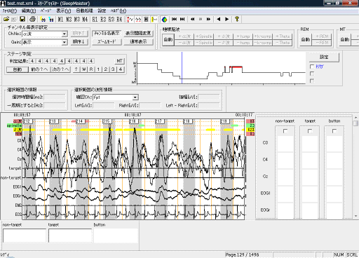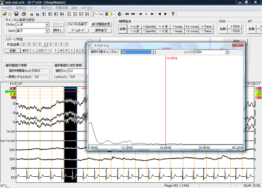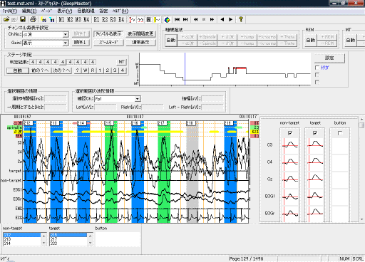 特徴波(α,spindle,δ,hump,θ,REM,体動等)を自動検出、手動で設定、編集可能